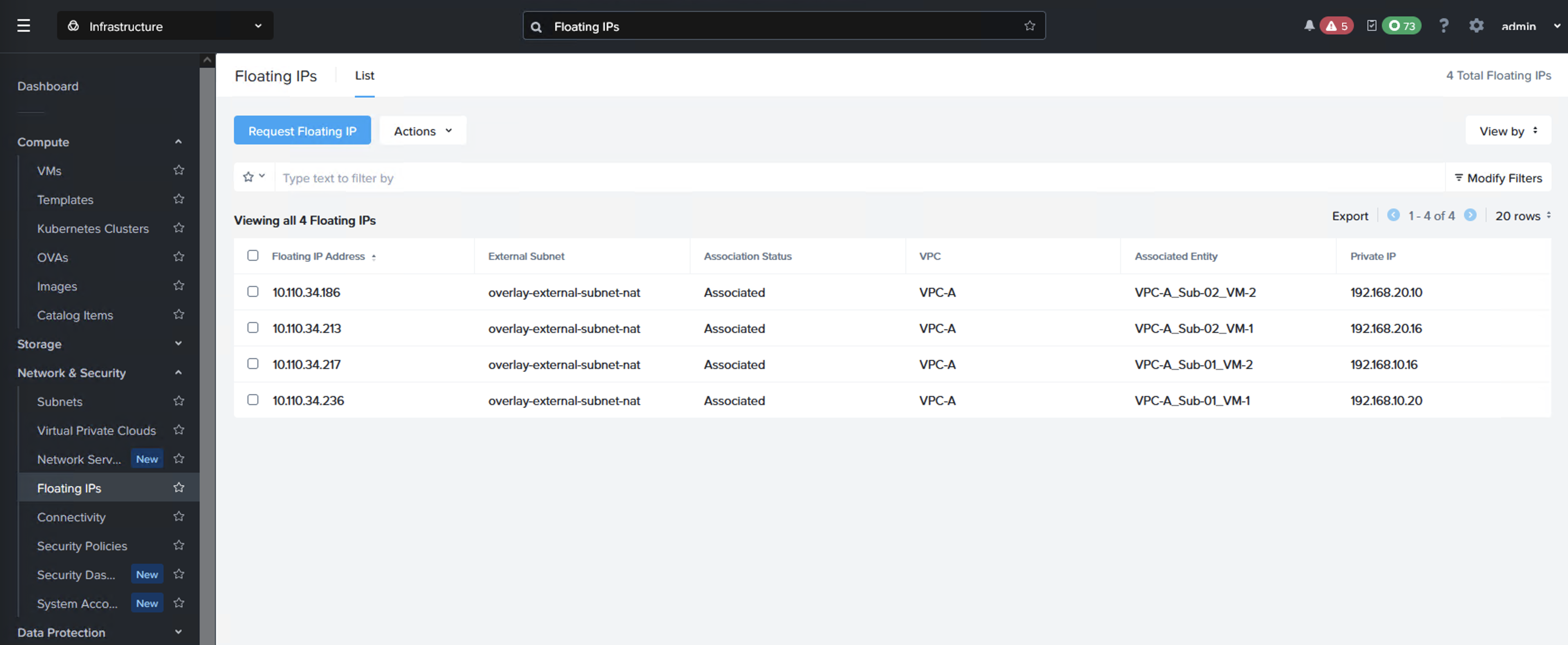 - Creates and associates Floating IPs from the AWS VPC CIDR range to each VM on the NAT VPC